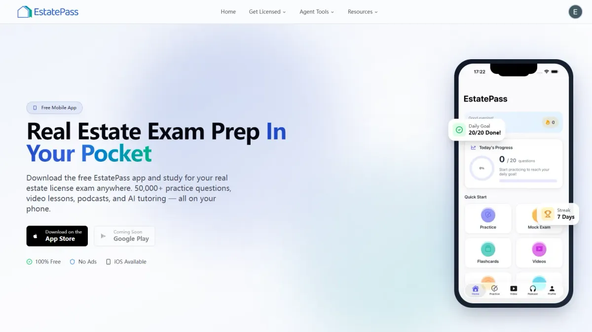 4) If you prefer mobile study, grab the EstatePass app and do a 10‑minute timed set daily.