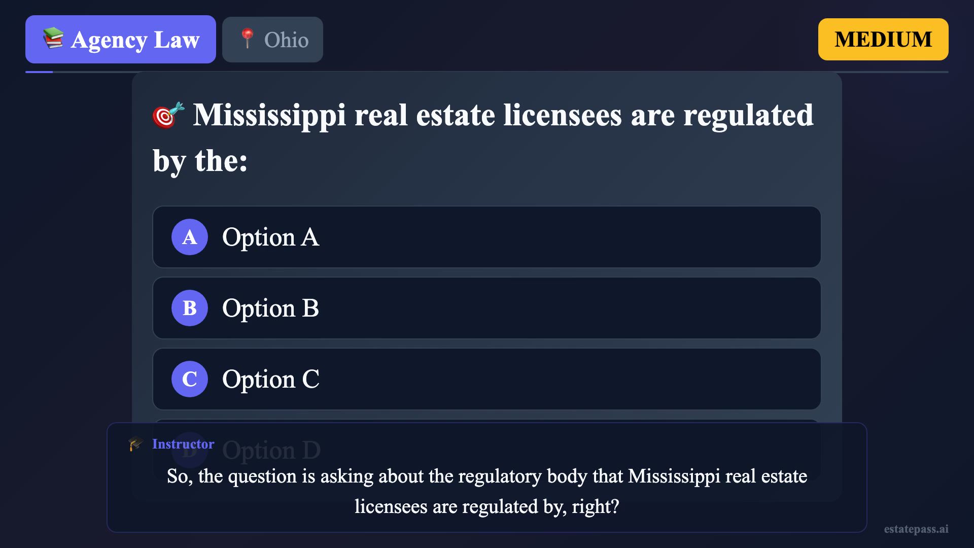 The Ohio Real Estate Board is incorrect. Ohio does not have a 'Real Estate Board' as its regulatory body. This option represents a common confusion with terminology used in other states, but it does not exist in Ohio's regulatory structure.